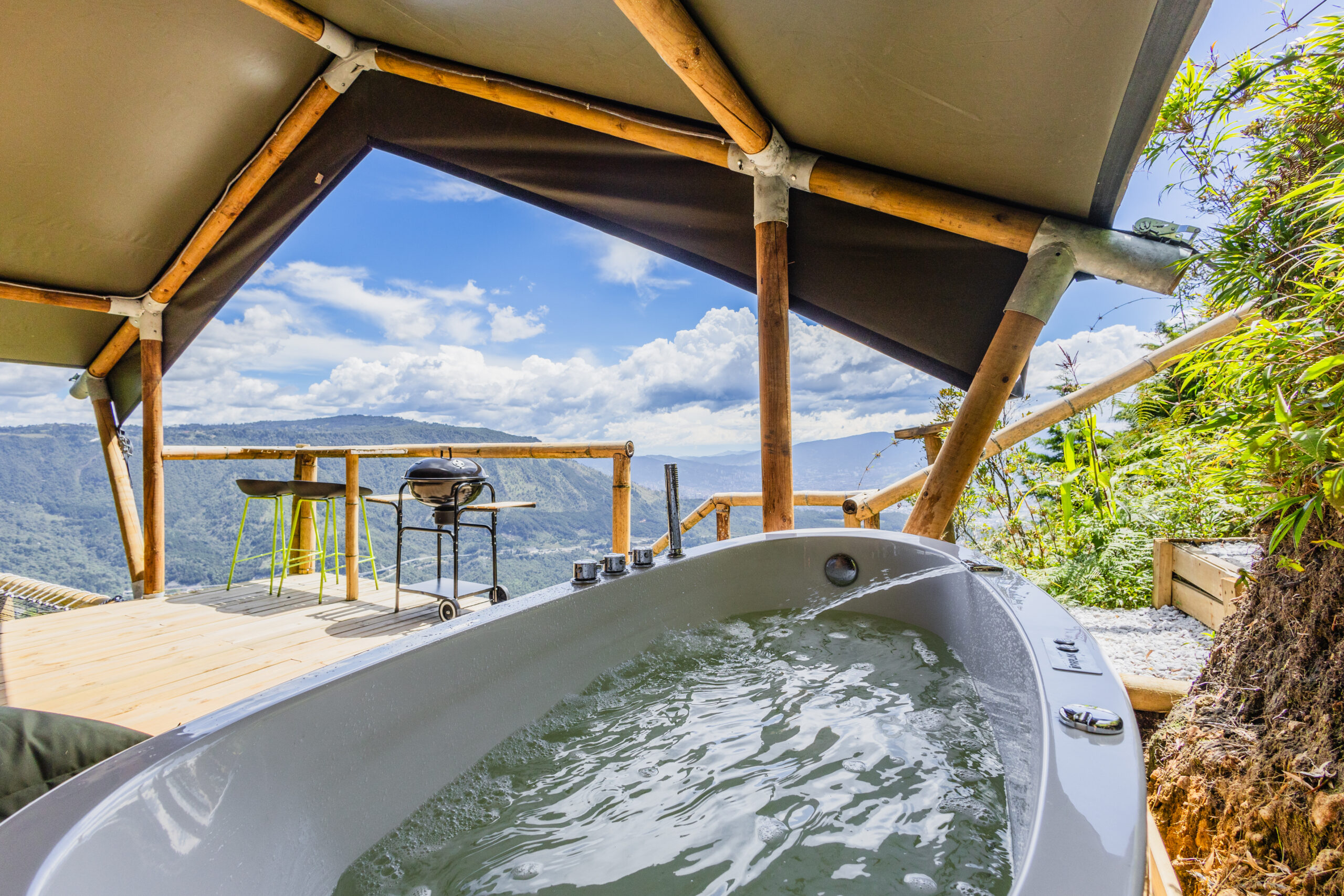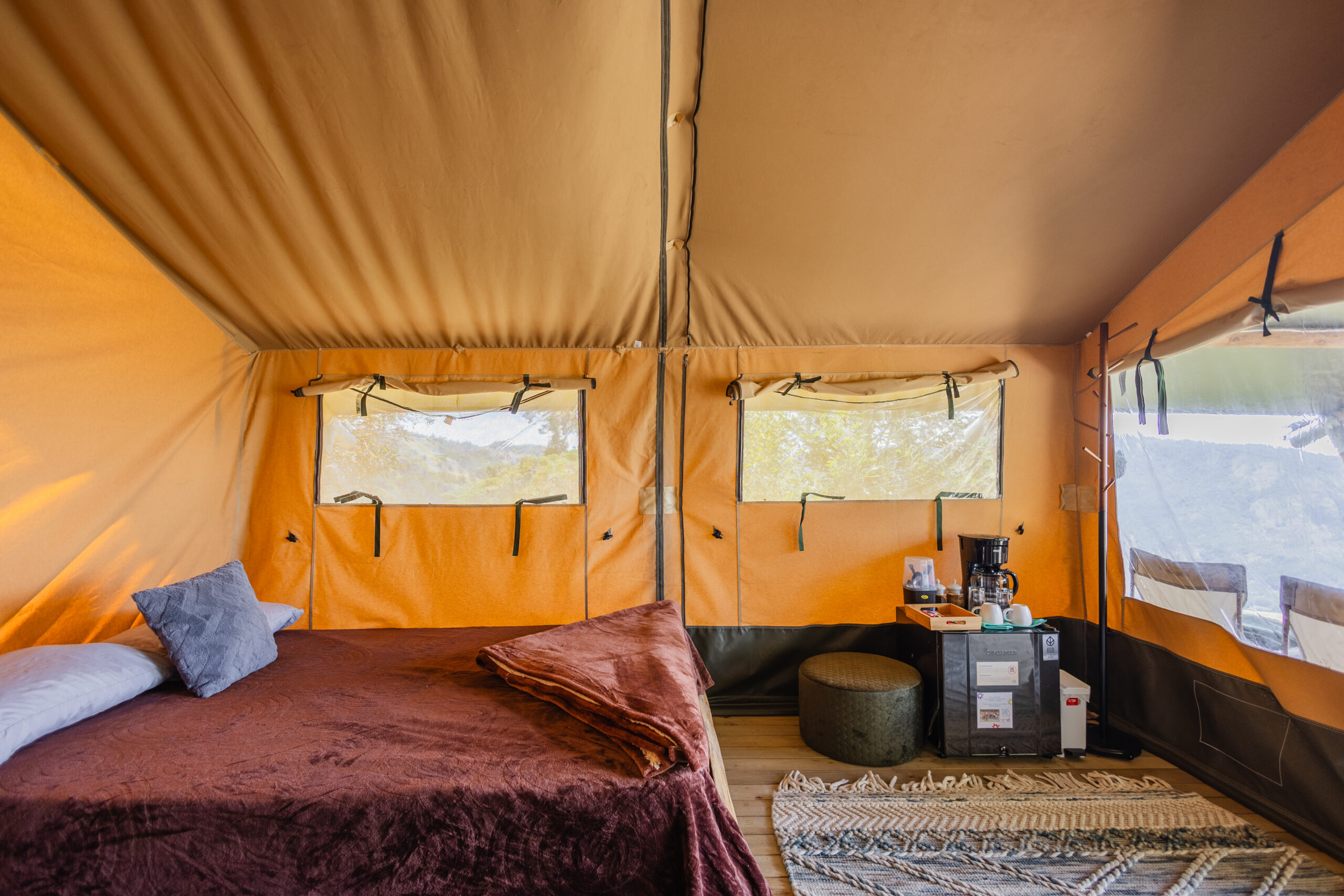 Nestled on a peaceful hillside with sweeping views of the city, this luxe eco glamping experience offers the perfect balance of nature and comfort. Designed for relaxation, the space features two cozy beds, a private bathroom, and a suspended catamaran-style net where you can unwind while gazing at the skyline.